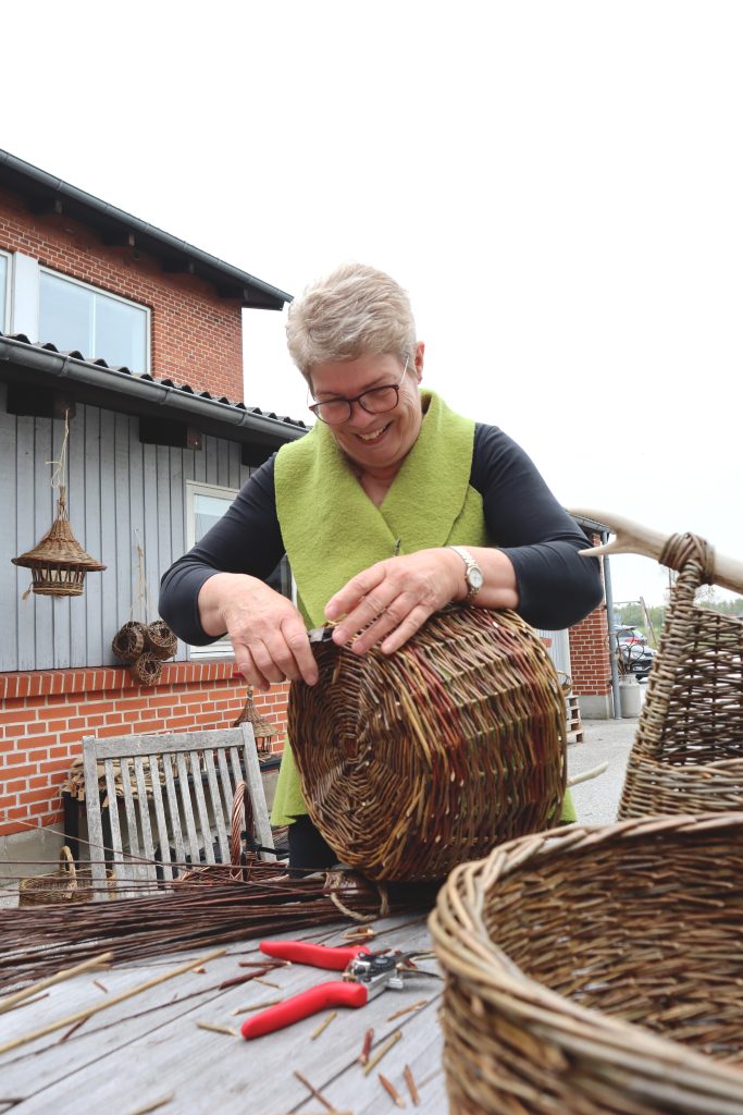 Kirsten loves willow weaving and its many possibilities. She weaves willow branches in all colors sand sizes into baskets, bird feeding houses, fish with glass eyes, wreaths and many other things.