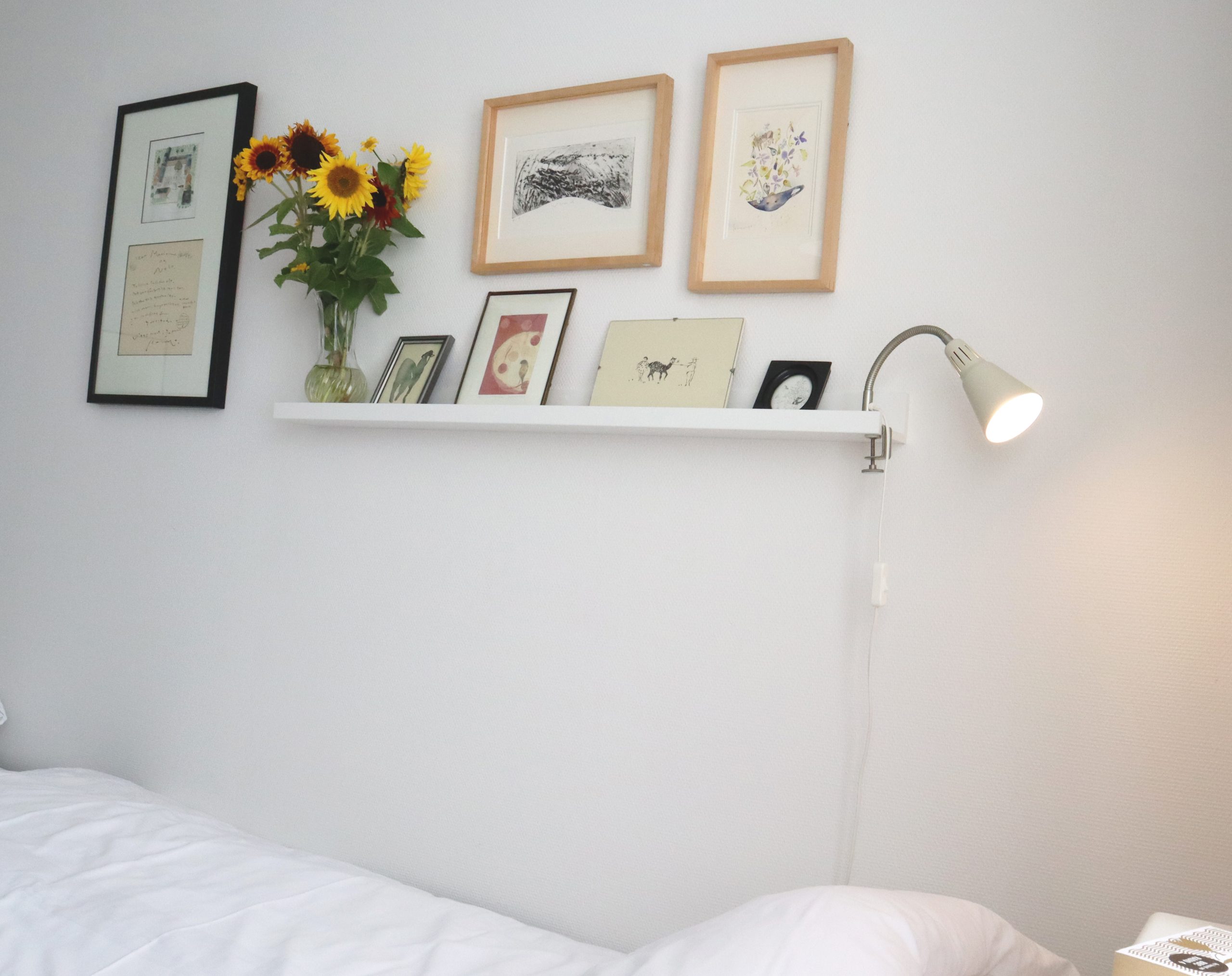 This room is centrally located in the house next to the common dining room and kitchen. The south-facing window offers a view of the school playground. With its two single beds and a bunk bed with an extra pull-out section, this room is ideal for a family with three children. It is also called the Japanese room because the Japanese artist Kazuyo Imai painted the pictures on its walls.