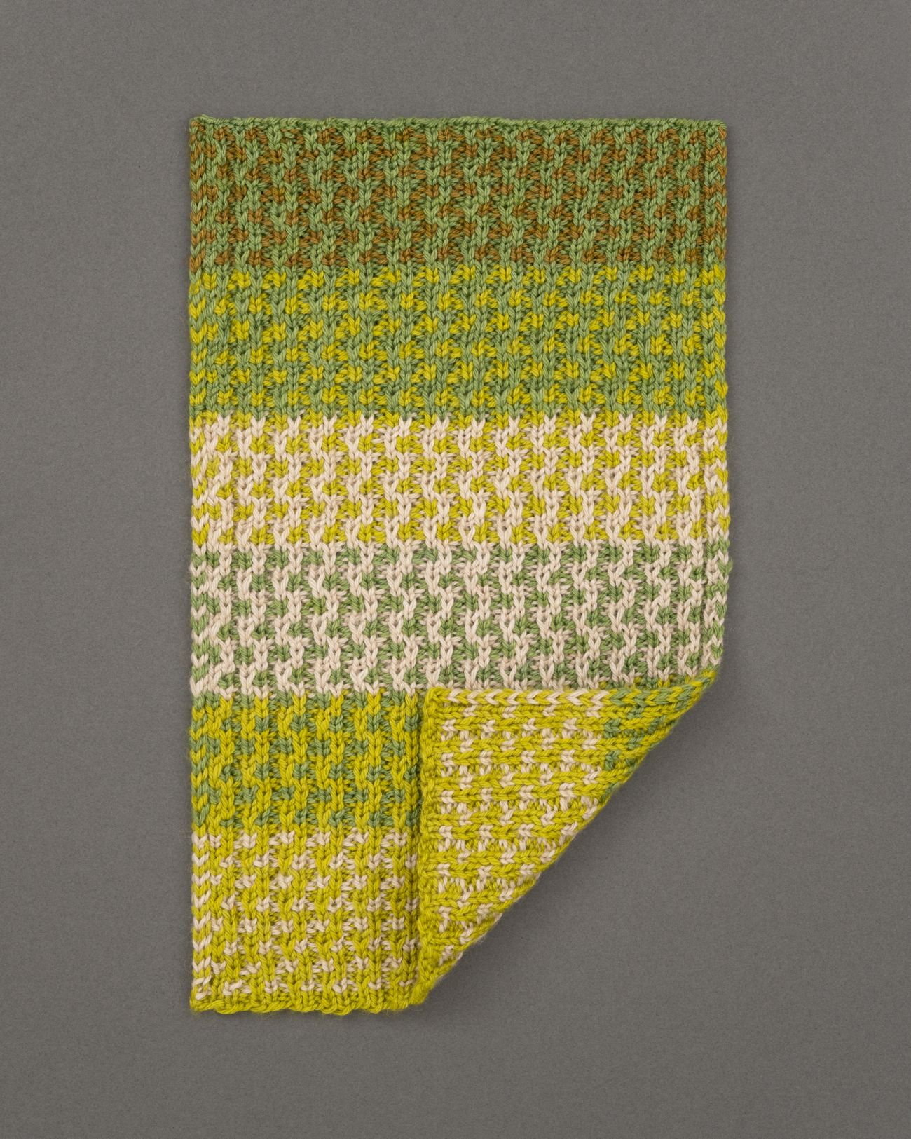 Adding color to textured stitch patterns is a wonderful way to add visual interest. This workshop is about simple and beautiful ways to add color to textured knitting using different striping techniques, slip stitches, and marling. While it builds on the Reversible Texture workshop, it can also be taken by itself. We will begin by surveying one-row stripes, two-row stripes, and marl stripes. Then, we consider how knits, purls, and slip stitches affect the stripes and reversibility. With this foundation, you will choose from a small selection of stitch patterns, design a motif with two or more colors, and create a swatch of your idea using a beautiful assortment of Isager yarns.